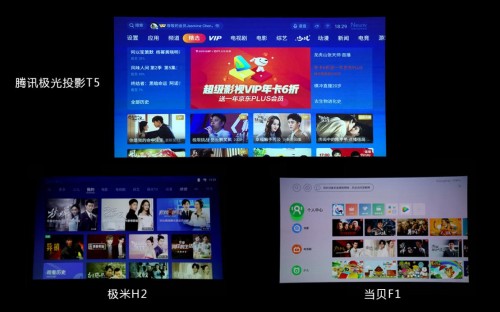 而当贝F1本身没有内容平台支持,所以它搭载的是爱奇艺和CIBN的内容,片源虽多,但弊端就是独播片源没有极米H2和腾讯极光投影T5有竞争力。